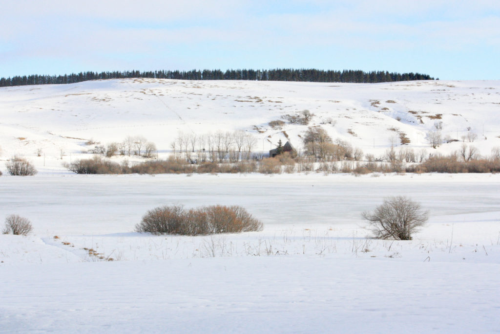Si je n’avais pas pris le temps de découvrir la Godivelle lors de mon premier passage en Auvergne, j’ai eu il y a quelques semaines eu l’occasion de me rattrapper. Un jour de congés au ciel un peu gris, pas beaucoup de force dans les jambes à cause d’un rhume mais une envie d’évasion plus forte que tout. On prend alors la voiture en famille et on file à La Godivelle avec nos chaussures de neige, car début février, tout le Cézallier était encore bien blanc cette année. Un tour dans le village et on prend vite la direction du lac d’en-Haut avec pour objectif de trouver un point de vue pour photographier les deux lacs et le village d’un coup. Nous n’avions pas de raquettes à neige mais cela nous aurait bien aidé au vu des congères et des couches de neige déposées par le vent. Mais comme je suis un peu têtue quand j’ai une objectif, je me débrouille pour grimper, prendre une grande bouffée d’air, admirer et photographier.