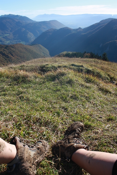 Grimpette en sous bois et boue sont en rendez-vous mais je persiste, je suis curieuse de voir ce qu’il y a là haut. Et puis après un virage, au loin, je vois du blanc. Des montagnes, des sommets enneigés. Mais mais, qu’est-ce ?